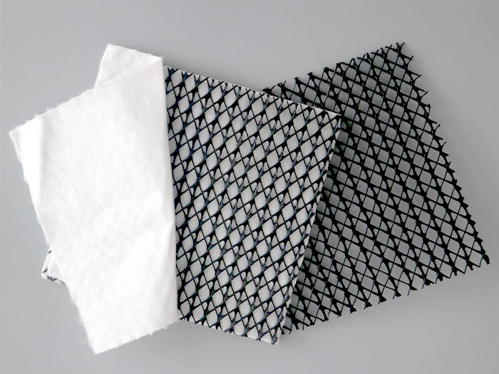 2.土工復(fù)合排水網(wǎng):采用熱粘工藝在土工排水網(wǎng)的一面或者兩面復(fù)合具有反濾作用的土工布而形成的土工排水材料。