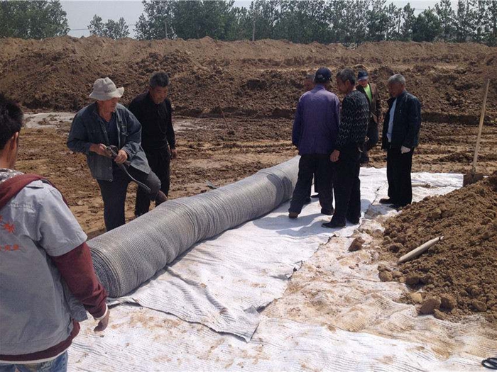 在湖底的各邊界處鋪設膨潤土防水毯(GCL)時,應使膨潤土防水毯(GCL)與坡面或護岸預留的膨潤土防水毯(GCL)搭接完好,對土質基礎則應適當提高搭接量。