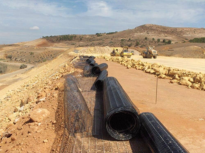 有時配合自粘感壓膠和表面瀝青浸漬處理,使格柵和瀝青路面緊密結合成一體。由于土石料在土工格柵網(wǎng)格內(nèi)互鎖力增高,它們之間的摩擦系數(shù)顯著增大(可達08~10),土工格柵埋入土中的抗拔力,由于格柵與土體間的摩擦咬合力較強而顯著增大,因此它是一種很好的加筋材料。同時土工格柵是一種質(zhì)量輕,具有一定柔性的塑料平面網(wǎng)材,易于現(xiàn)場裁剪和連接,也可重疊搭接,施工簡便,不需要特殊的施工機械和專業(yè)技術人員。